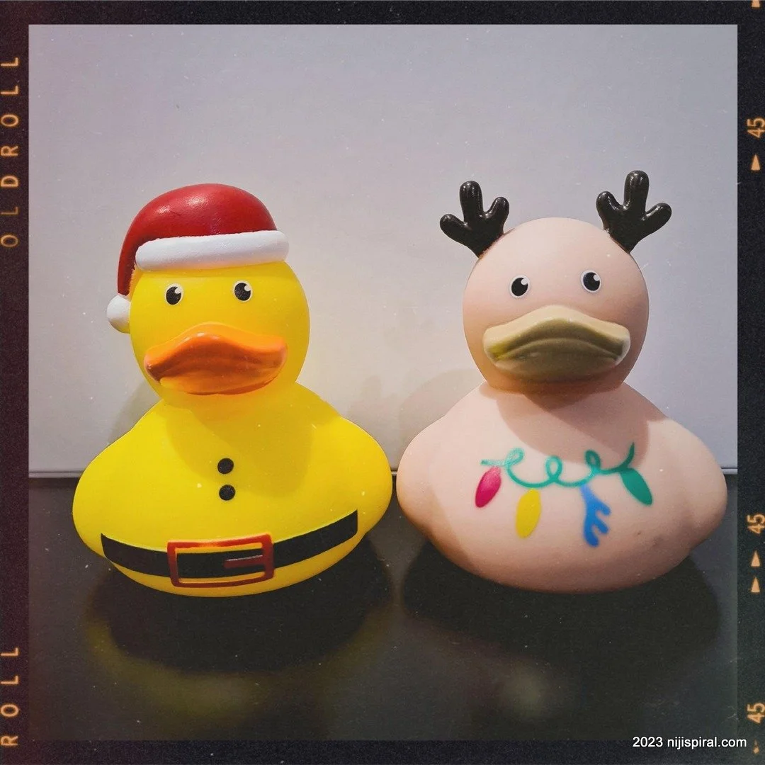 I bought Christmas theme rubber duckies. One is santa and the other a reindeer. Both ducks looks cute, but it doesn’t float well in water. It tips over on one side haha!