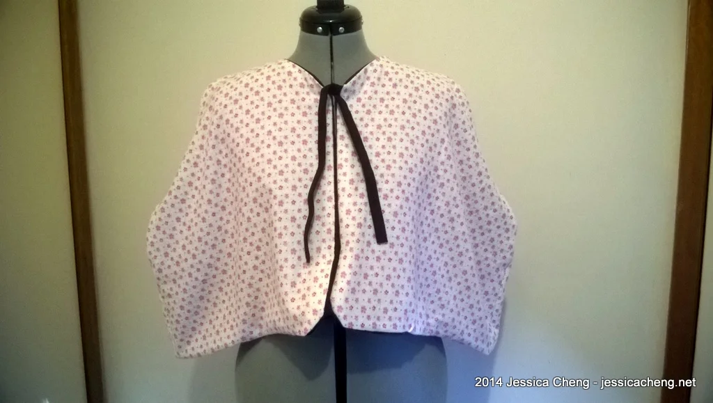 With this cape, I designed it myself, so it didn't turn out as nice as it could have been. If you look really carefully, you can see the bottom side cut in!! I should have added more flare.. but when I was drawing up the pattern I didn't think about that. But that's how you learn!